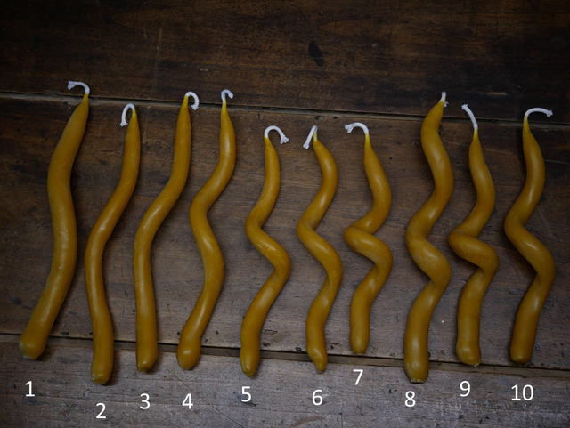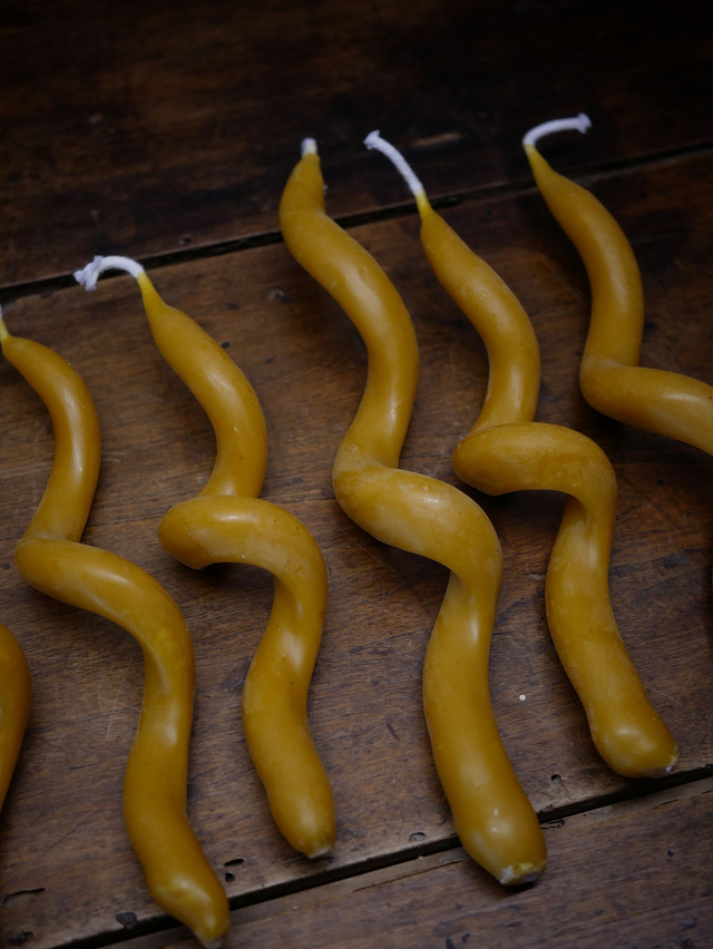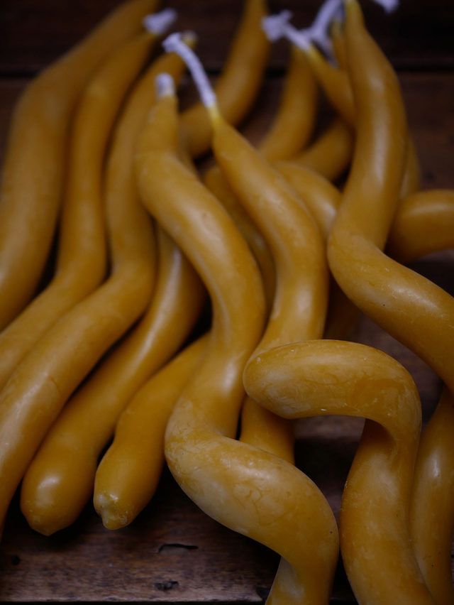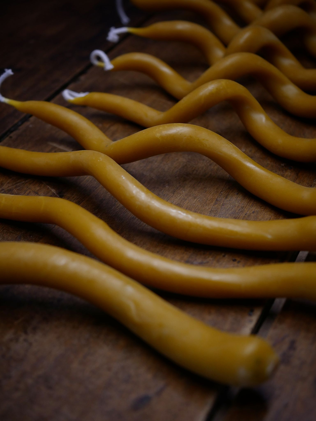 Des bougies trempées et ondulées en pure cire d'abeille locale... envoûtantes ✨