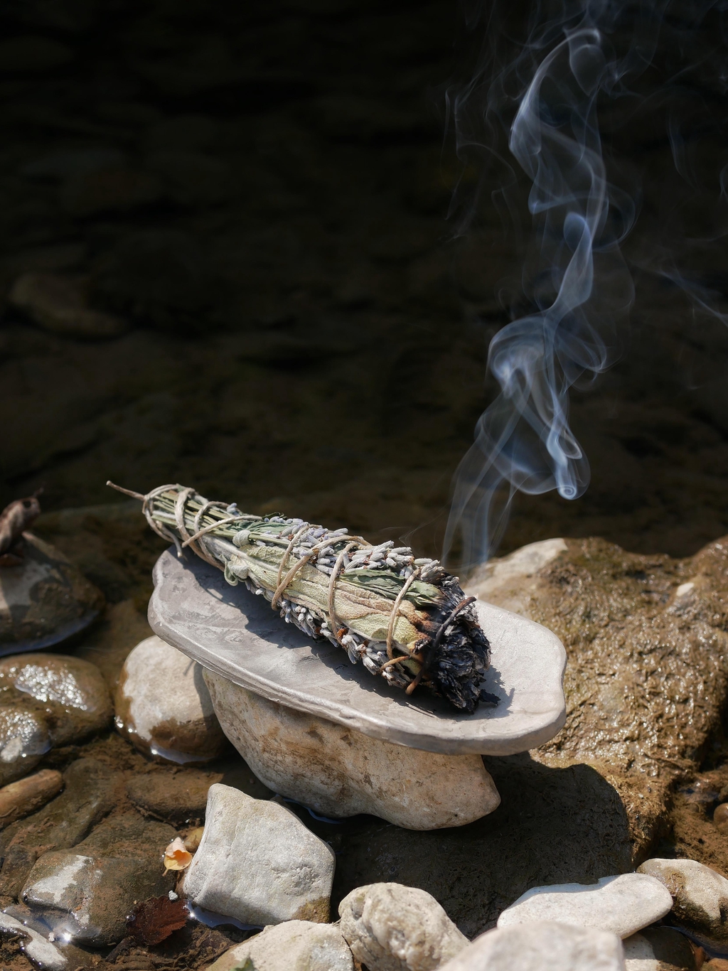 ༄ Un assortiment de 3 bâtons de fumigation confectionnés à la main avec uniquement des plantes du jardin d’Alice, permacultivées sans aucun traitement.