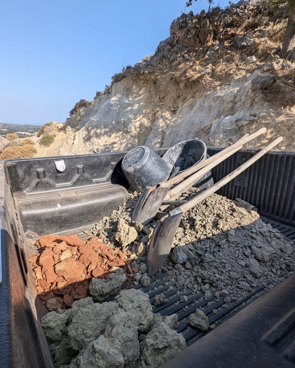 Les décors sont peints à l’argile ferreuse sauvage, reprenant des motifs minoens, pour tisser le lien avec des rituels ancestraux, au plus proche de la nature, de ses plantes et des hommes.